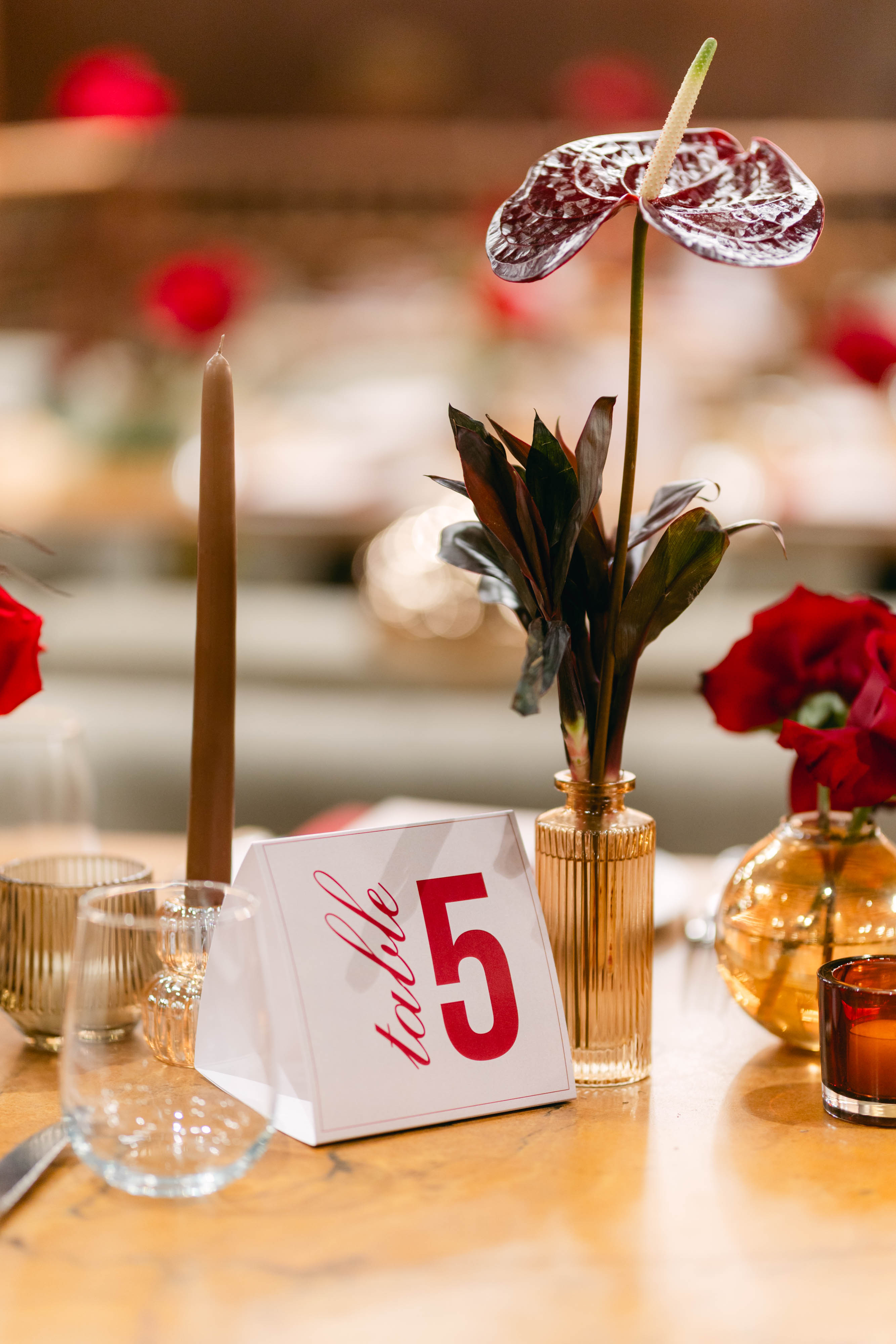 A bespoke print system created for a formal wedding celebration, spanning invitations, menus, table numbers, and bar signage.