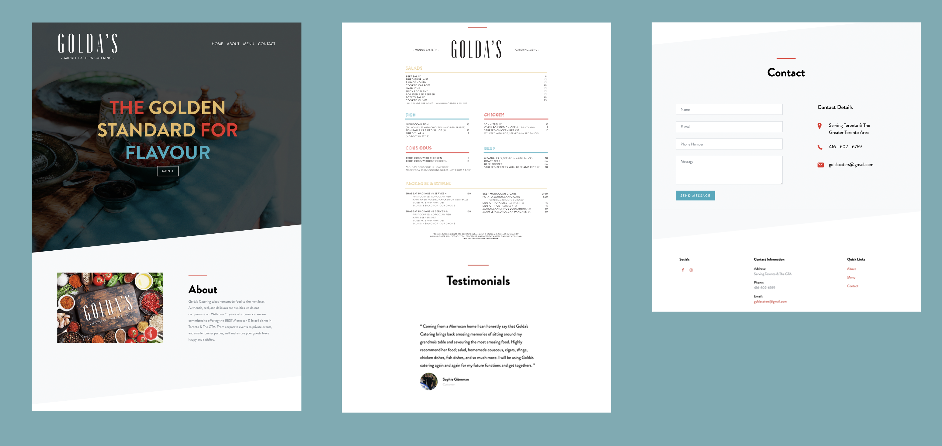 Rapid creation of a Middle-Eastern, exotic website for Golda's Catering during the onset of COVID-19.