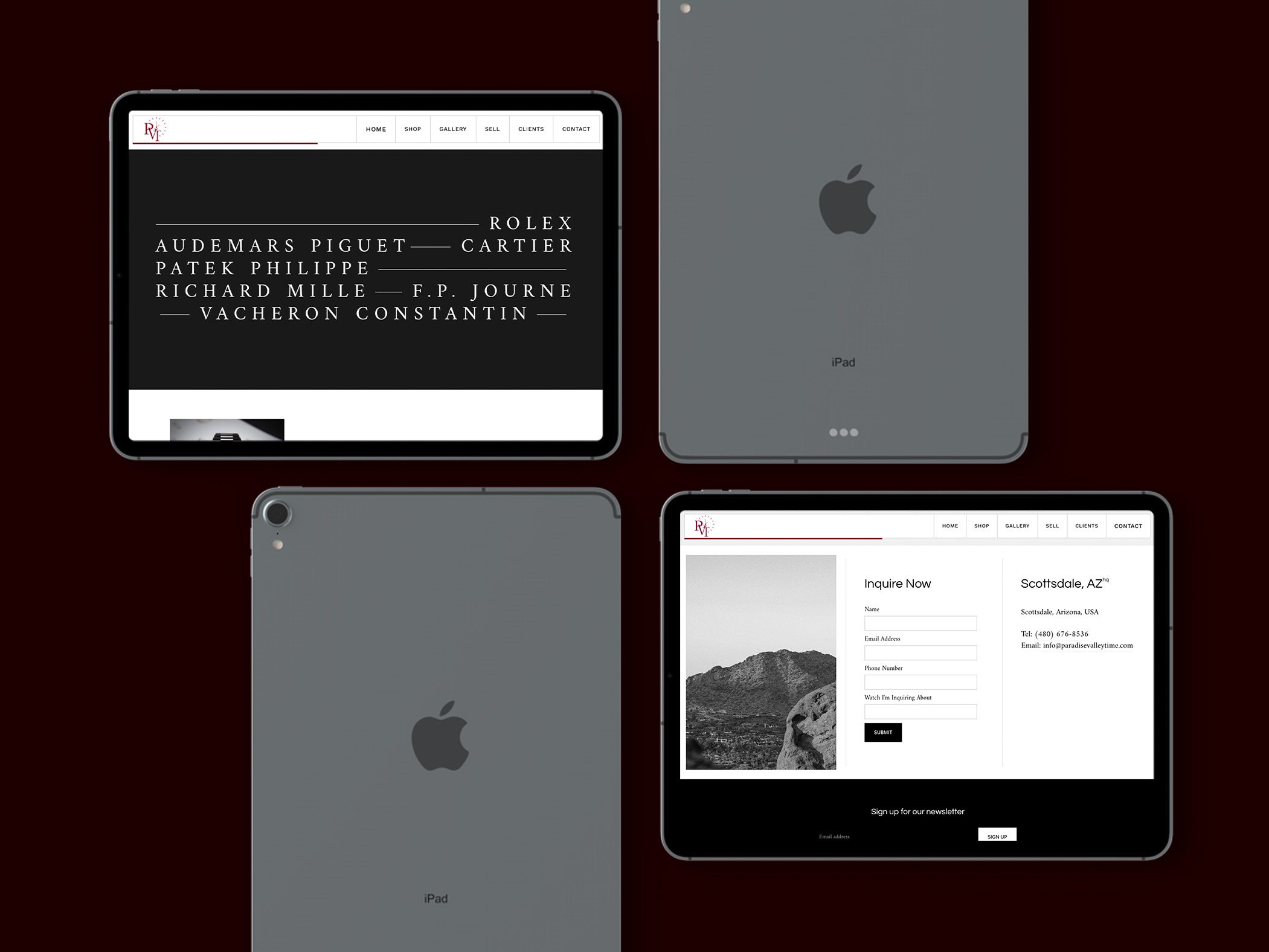 A refined website designed to reflect Paradise Valley Time’s credibility within the luxury watch market while supporting a seamless browsing and inquiry experience.