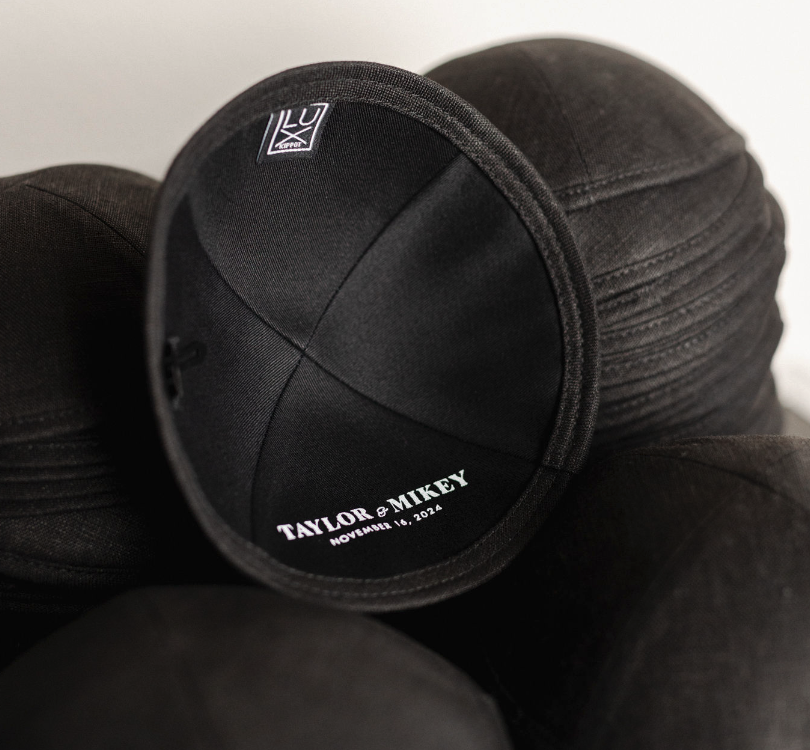 A monochrome wedding identity built around contrast, precision, and strong typography. Deep black surfaces paired with sharp white type created a dramatic visual language that carried through every touchpoint. Invitations, menus, seating charts, custom kippot, and signage were designed as one cohesive system—clean, striking, and unmistakably formal.